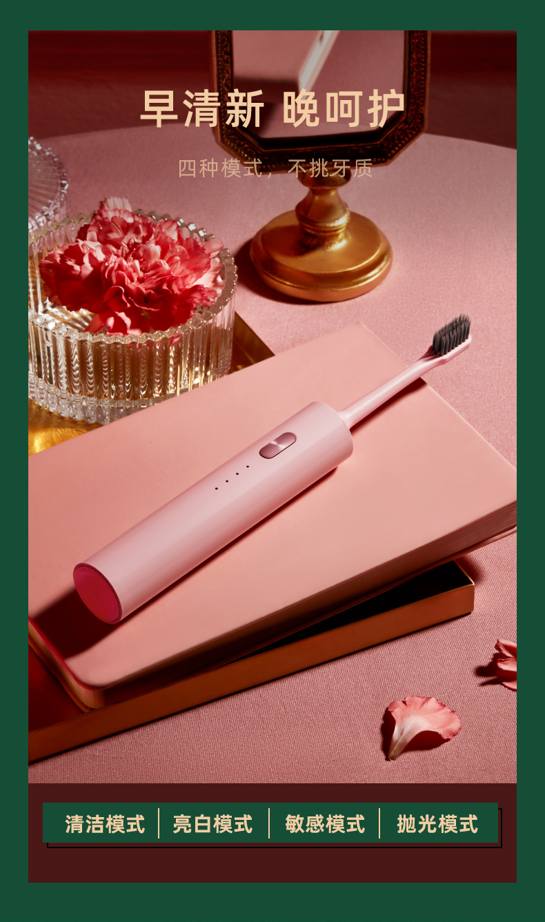 操作方法:操作方法は簡単で、四つのモード-清潔、明るい白、研磨、敏感、ワンタッチで調整して、とても便利です。