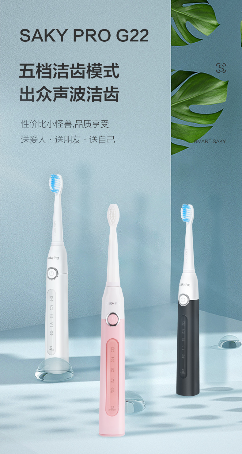 舒客(Saky)電動歯ブラシSAKY成人音波式充電式震動歯ブラシG 22特恵二本は暗夜黒+皓月白を入れます。