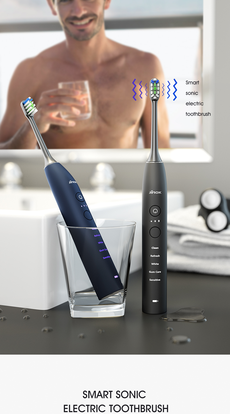 【自営倉翌日達】ドイツjimok電動歯ブラシ全自動充電式美白男女史成人超音波式カップルセット深遠ブルーアップグレード(歯ブラシ6本)
