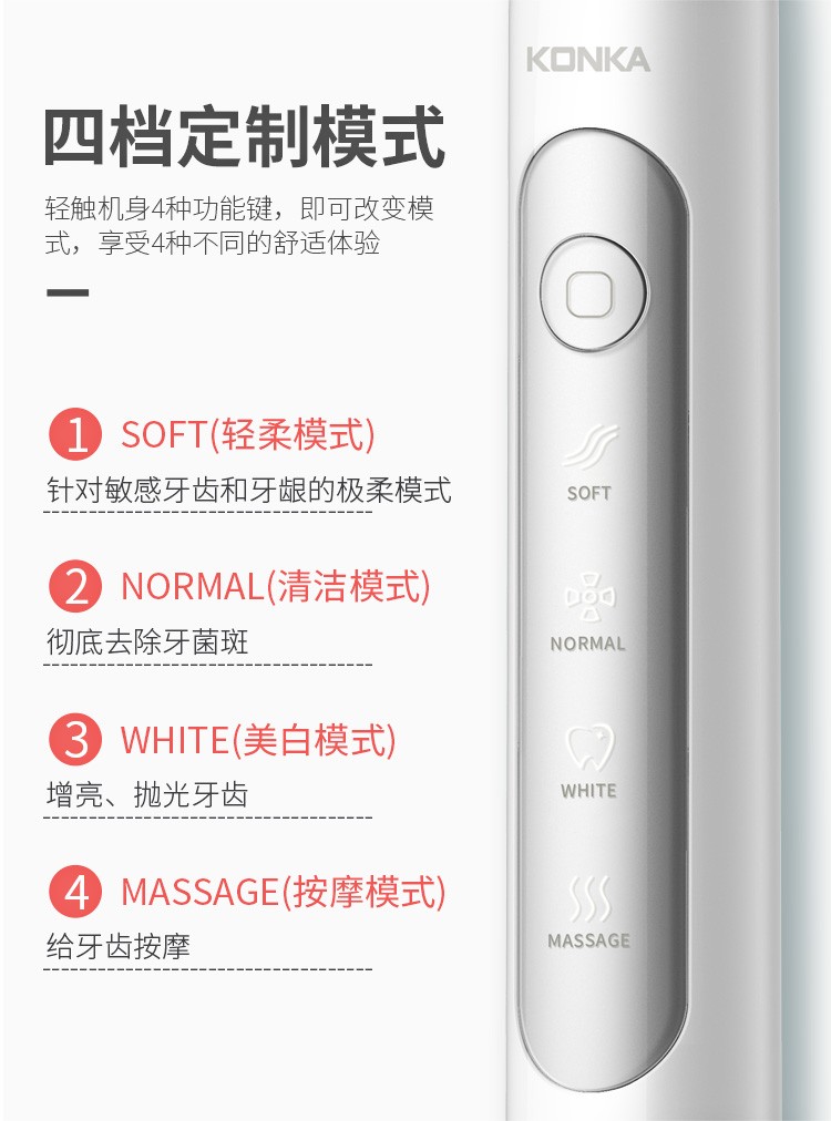 康佳(KONKA)電動歯ブラシ充電式成人音波振動式自動口腔ケア歯保護歯ブラシKZ-5 S女王粉-グレード4ブラシ