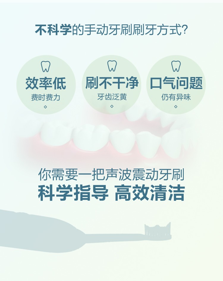 音波式振動の頻度が高く、歯磨き効果が良く、歯茎を刺激しないので、普通の歯ブラシよりも仕上がりが良いです。