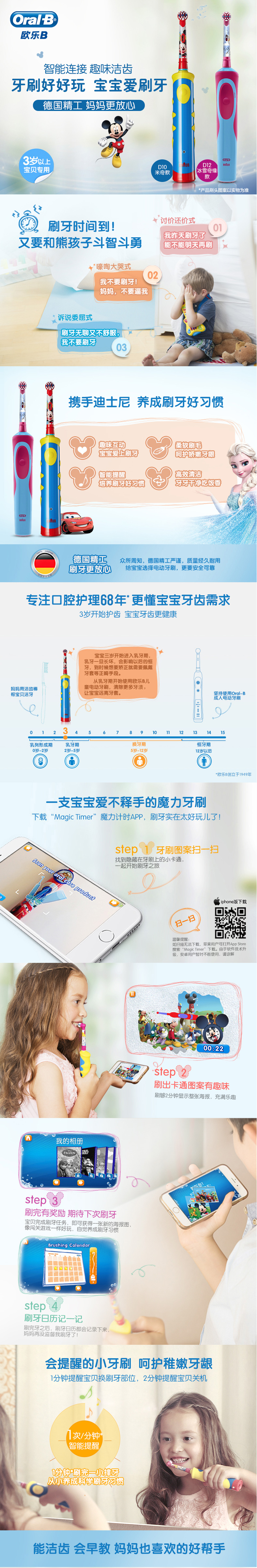 EUROB(Oral-B)ドイツ精工ブラウコン電動歯ブラシ子供2 D充電式回転歯ブラシD 12/D 10ミッキータイプ
