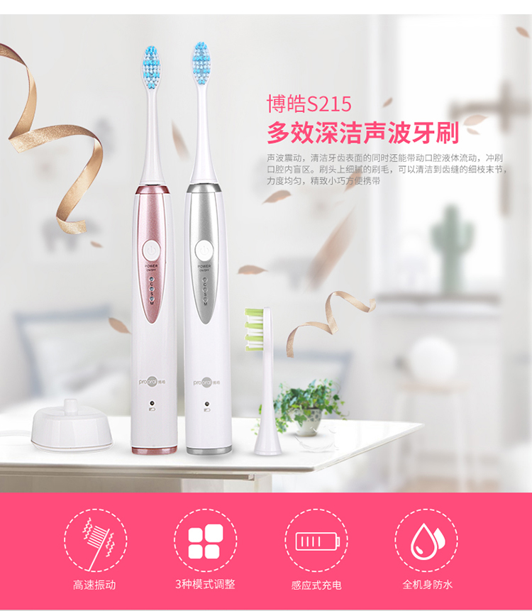 博皓電動歯ブラシ大人充電式音波式振動歯ブラシ2081シルバー